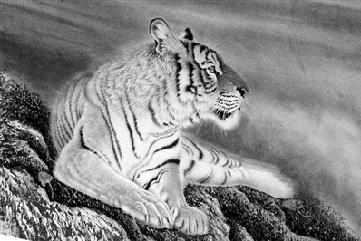 “我们将画带到了现场。”开庭后,原告代理人将画作作为证据向法庭出示。打开画作的一瞬,一只虎头马上被众媒体的闪光灯映成一片荧光白色。